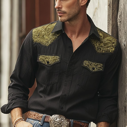 Per uomo Paisley Stampa Floreale Etnico Camicia Camicia Western Camicia da cowboy Manica Lunga Vintage Retrò All'aperto Casuale Abbigliamento da lavoro Primavera Autunno Collo ripiegato Due tasche