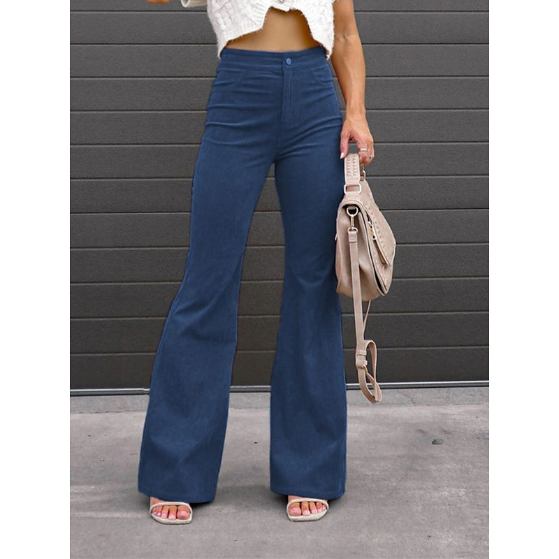 Women's Bell Corduroy Flare Pants Bottom Trousers Full Length Pocket High Waist Fashion Streetwear Xmas Wine Black S M Winter Autumn Fall