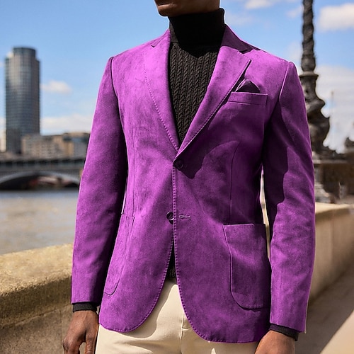 Herren Blazerjacke Alltagskleidung Gefüttert Traditionell-Klassisch Frühling Herbst 95% Polyamid 5% Elasthan Einfarbig Basic Lässig / Alltäglich Einreihig Blazer Schwarz Burgunderrot Purpur Kaki