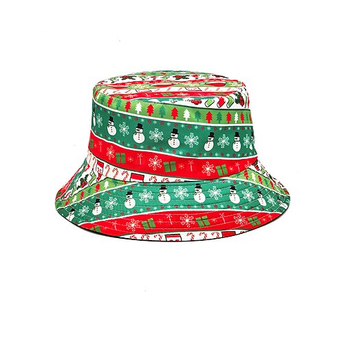 Cappello da pescatore natalizio da donna, in poliestere, con stampa di Babbo Natale e renne, copricapo per feste e celebrazioni invernali