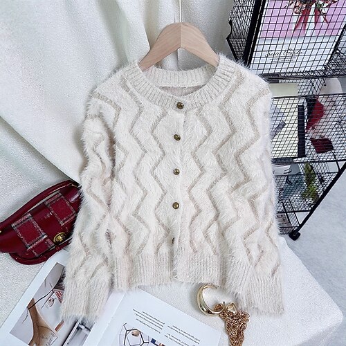 Per donna Felpa Cardigan Moda Streetwear Casual Tinta unica Girocollo Bottoni Lavorato a maglia Manica Lunga Top Regolari Maglia Quotidiano Ferie Uscire Bianco Rosso Autunno Inverno