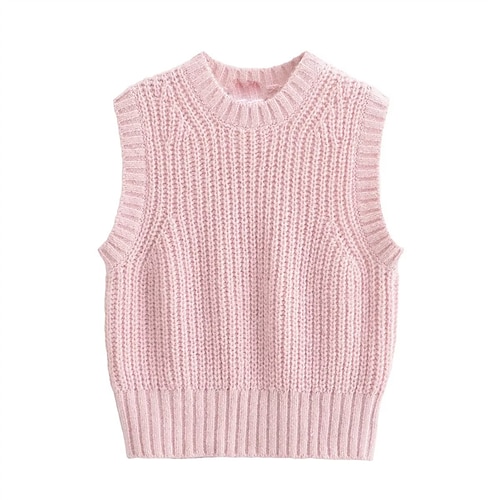 Per donna Felpa Gilet Maglione Elegante Moda Carino Tinta unica Girocollo Lavorato a maglia Senza Maniche Top Regolari Maglia All'aperto Lavoro Quotidiano Giallo Rosa Primavera Autunno