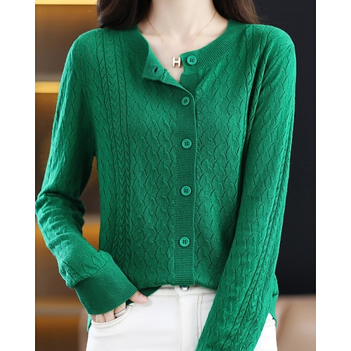Per donna Felpa Cardigan Streetwear Casual Tinta unica Girocollo Bottoni Lavorato a maglia Manica Lunga Top Regolari Maglia Quotidiano Ferie Weekend Blu Giallo Autunno Inverno