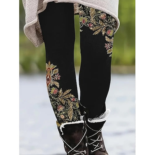 Per donna Leggings Vacanza Vintage Stile Etnico Lunghezza alla caviglia Vita Alta Floreale Grafico Stampa 3D Asciugatura Rapida Traspirabilità Morbido Elasticizzato All'aperto Casa Casual Bianco