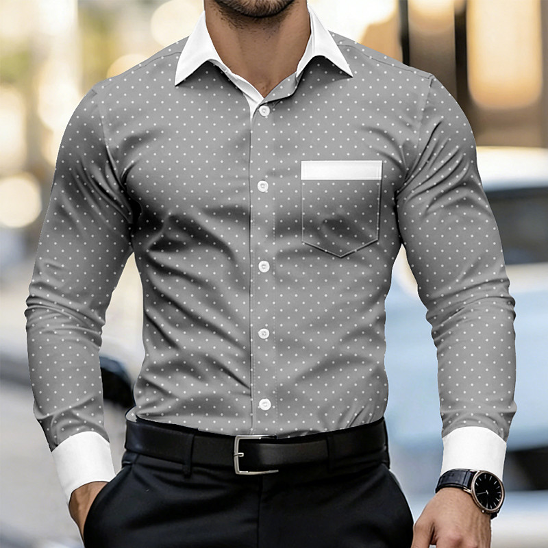 Men's Geometric Polka Dot Shirt Button Up Shirt Casual Dress Shirt Long Sleeve Fashion Casual Outdoor Dailywear Spring Fall Turndown 3D Print Collared Shirts Blue Green Khaki Gray