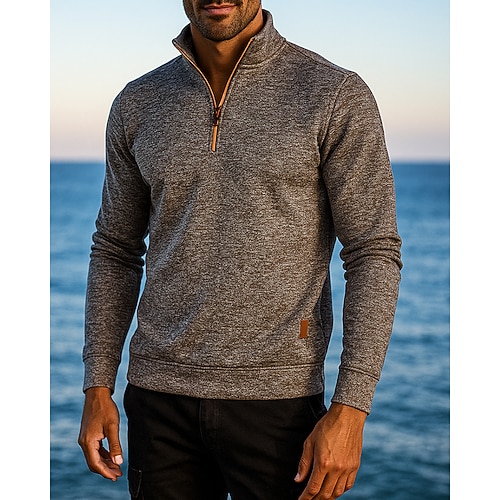 Per uomo Mucca Felpa Quotidiano Classico Casual Cowboy Western Collo alla coreana Zip a un quarto All'aperto Casa Ufficio Lavoro Nero Blu Marrone Verde militare Grigio Con zip Autunno Inverno