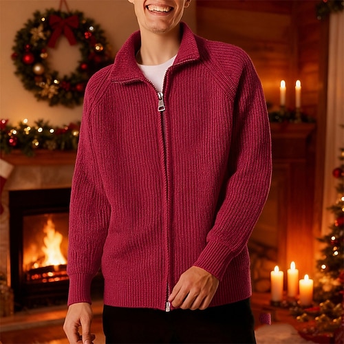Per uomo Maglioni di Natale Cardigan Maglione Corto Maglione con Zip Maglione a maglia A Coste Maglia Top Regolari Tasca Cerniera completa Semplice Collo alla coreana Natale Moda Vacanza