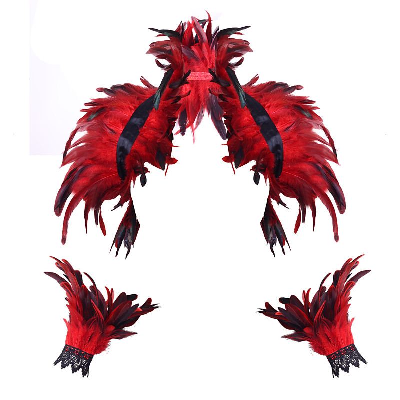 Carnival 2026Rio Carnival Samba Accessories 3Pcs Women's Feather Costume Set: Gothic Feather Cape Shawl, Mini Skirt Long Lace Wrist Cuffs Brazil Festival Performance Costume