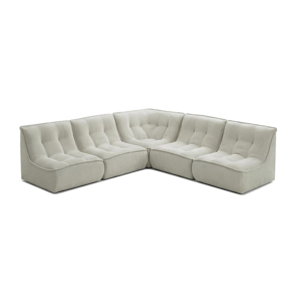 Divano modulare a 5 posti L.250 cm in velluto a coste ecru