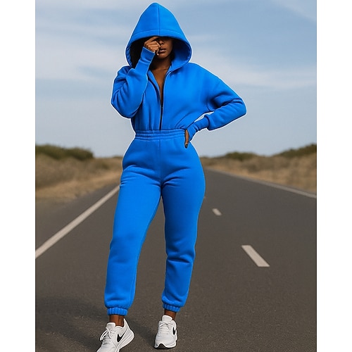 Per donna Felpa con cappuccio monopezzo Set di tute Con zip Tinta unita Completo Abbigliamento Autunno Bianco Verde militare Escursionismo Lavoro All'aperto Manica Lunga Sport Abbigliamento sportivo