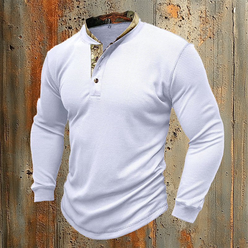 Men's Waffle T-shirt T Shirt Henley Shirt Long Sleeve Solid Color Knitwear Daily Buttons Henley Outdoor Causal Casual Spring Fall Spring Fall Navy Black White Henley T-Shirt