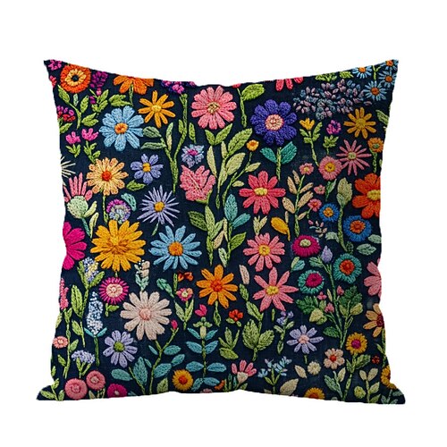 Fodera per cuscino floreale, federa decorativa con stampa piatta 2D e ricamo finto, tessuto in poliestere morbido per divano, camera da letto, soggiorno, arredamento per la casa