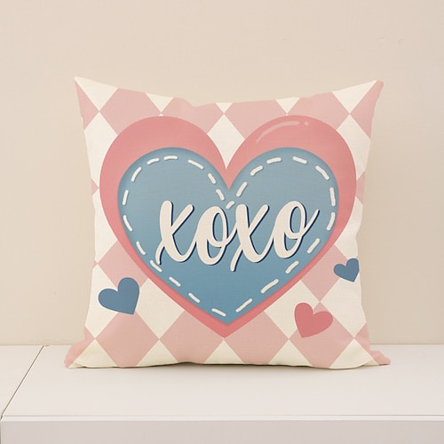 federa per cuscino a forma di cuore per San Valentino, cuscino decorativo stampato in lino, cuscino per testiera della camera da letto, cuscino decorativo per decorazioni festive per letto, divano,