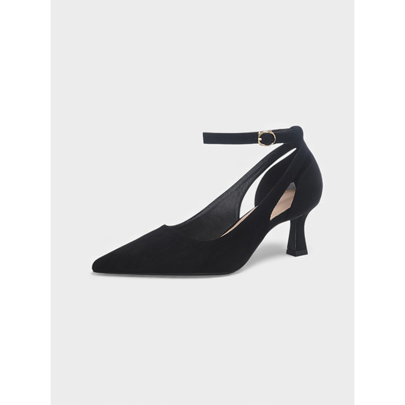 Women's Nude Suede Ankle-Tie Heels – Elegant Pointed-Toe Stiletto Pumps for Indoor Weddings, Wedding Guests and Dressy Formal Party Shoes