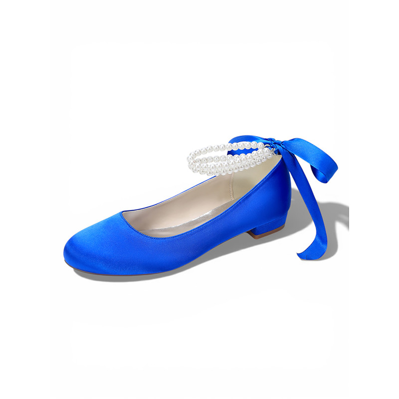 Women's Ivory Pearl Ankle Strap Flats, Elegant Ballet Bridal Shoes for Outdoor Garden Lawn Wedding