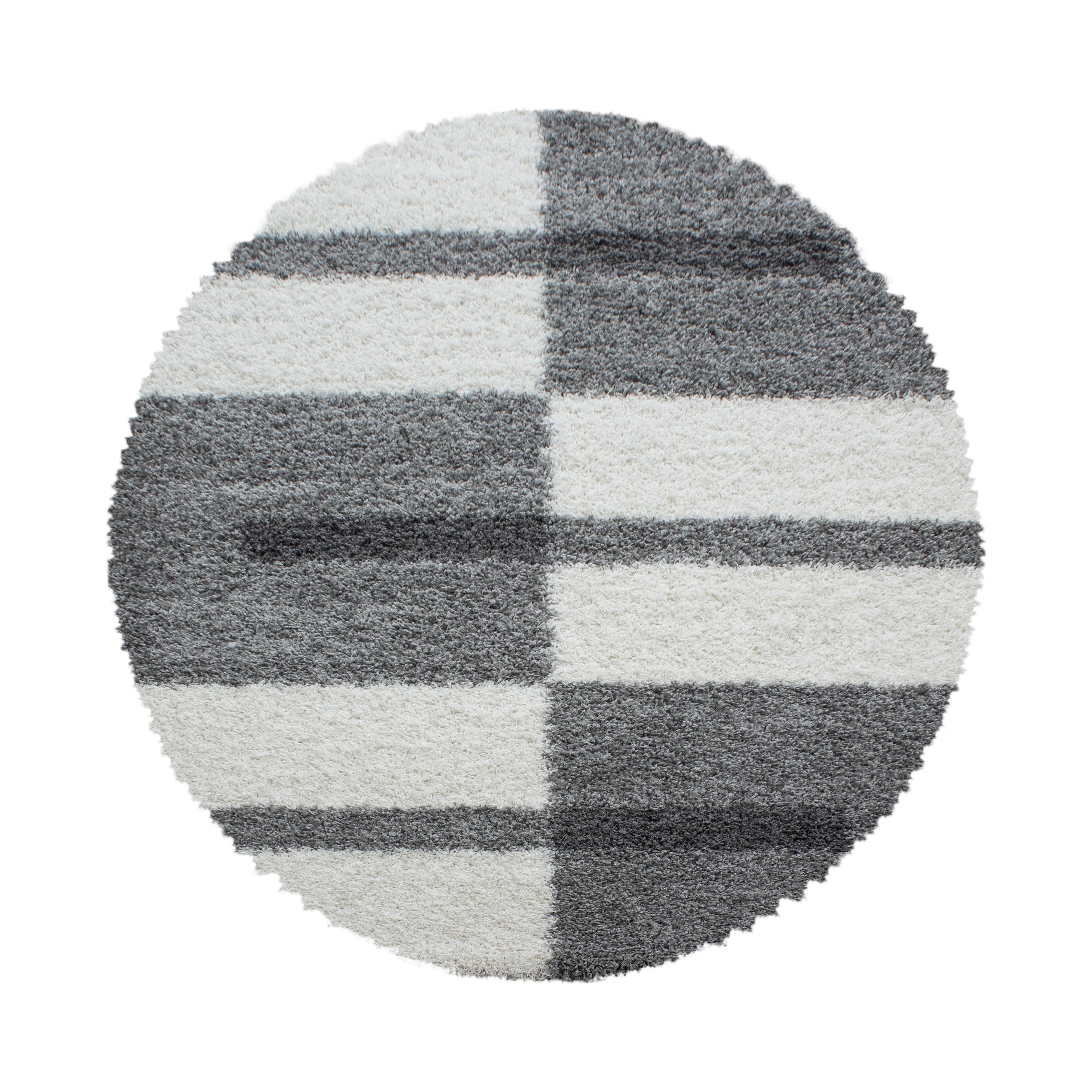 Gala Rund Shaggy tæppe Ternet - Lysegrå - 160x160 (Rund)