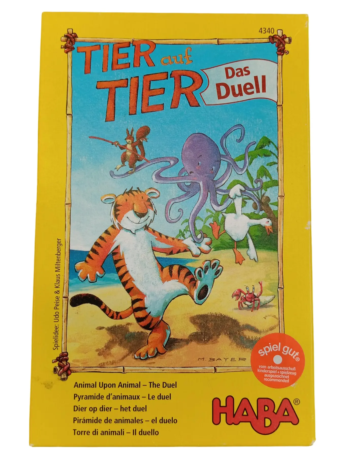 HABA Tier auf Tier - Das Duell Gesellschaftsspiel, Stapelspiel für Kinder ab 3 Jahren