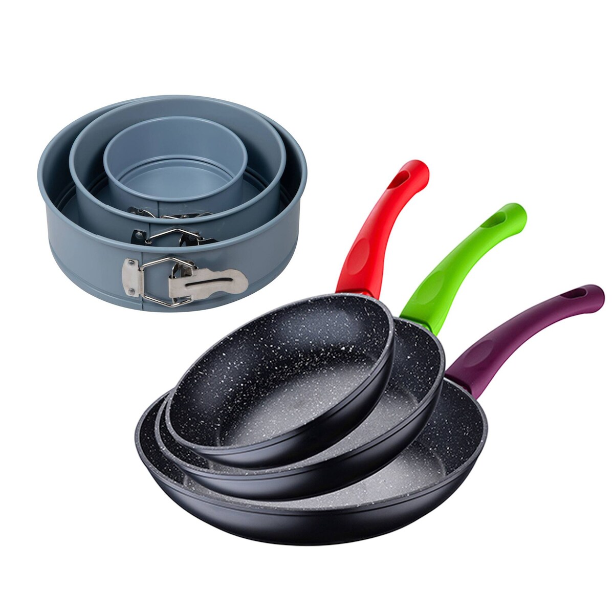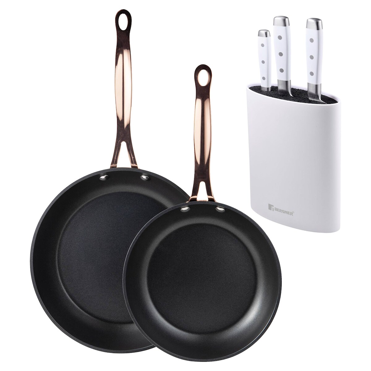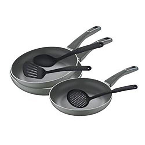 BERGNER - Set aus 3 Pfannen Ø16/Ø20/Ø24 cm gepresstes Aluminium Himmelblau Set 3 Küchenutensilien aus Akazienholz
