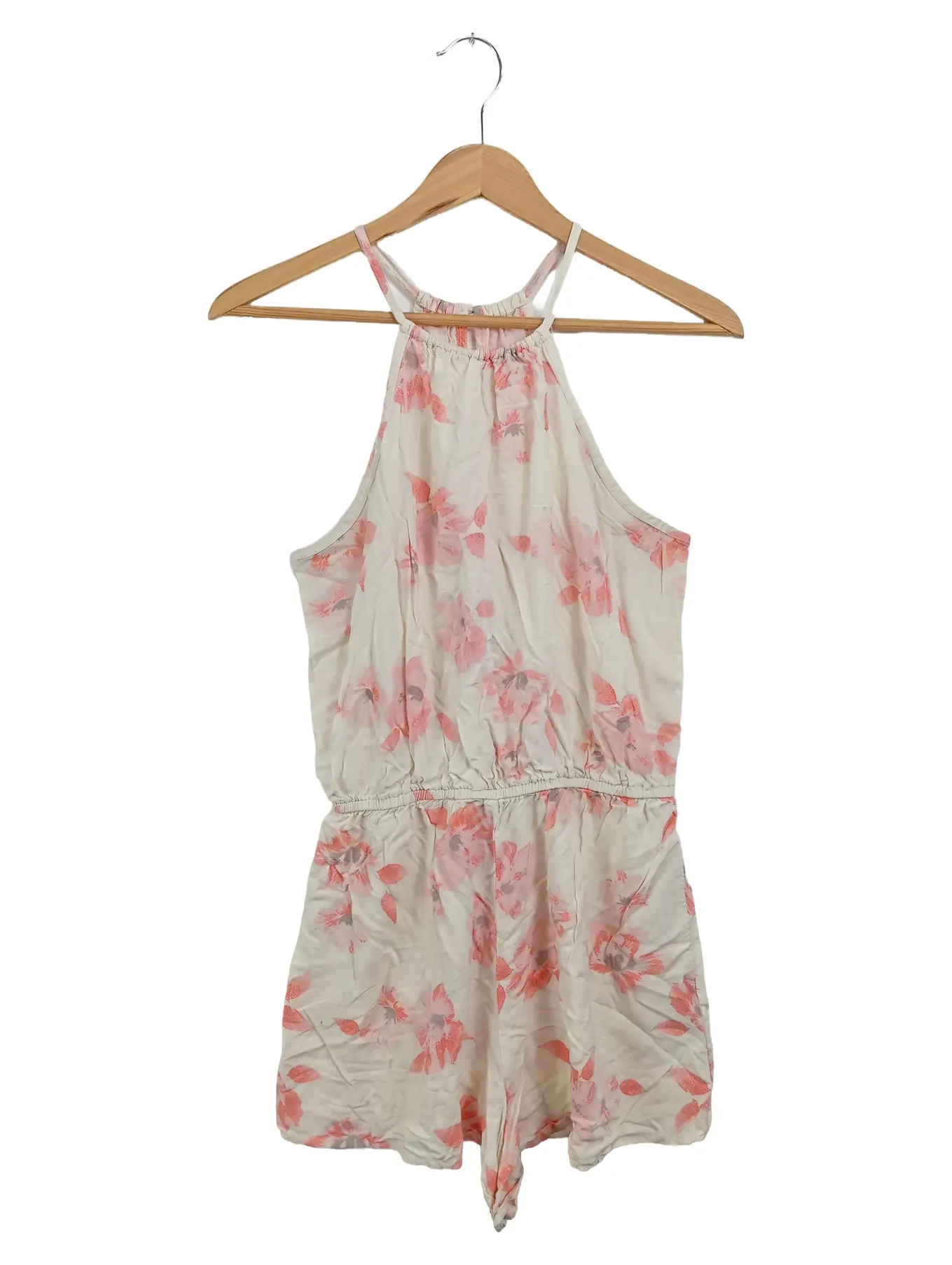 HOLLISTER Jumpsuit Damen L Weiß Rosa Blumenmuster Sommer