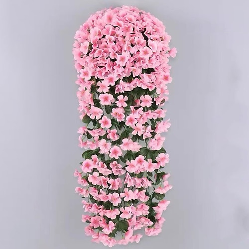 2 künstliche Orchideensträuße zum Aufhängen, künstliche violette Ranken als Wandbehang, Kunststoff-Hängeblumen für die Innendekoration, Wohnzimmer, Garten, Balkon