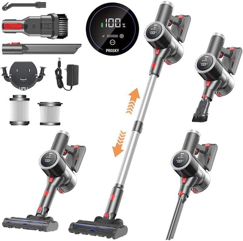 Prasky P1MAX Staubsauger Silber - mit Becher, Typ C/EU-Stecker, Verlängerte Laufzeit, intelligentes Display, 150 AW