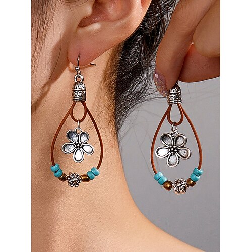 orecchini pendenti floreali boho da donna – orecchini pendenti in stile western con perline turchesi per festival estivi, feste e abiti quotidiani
