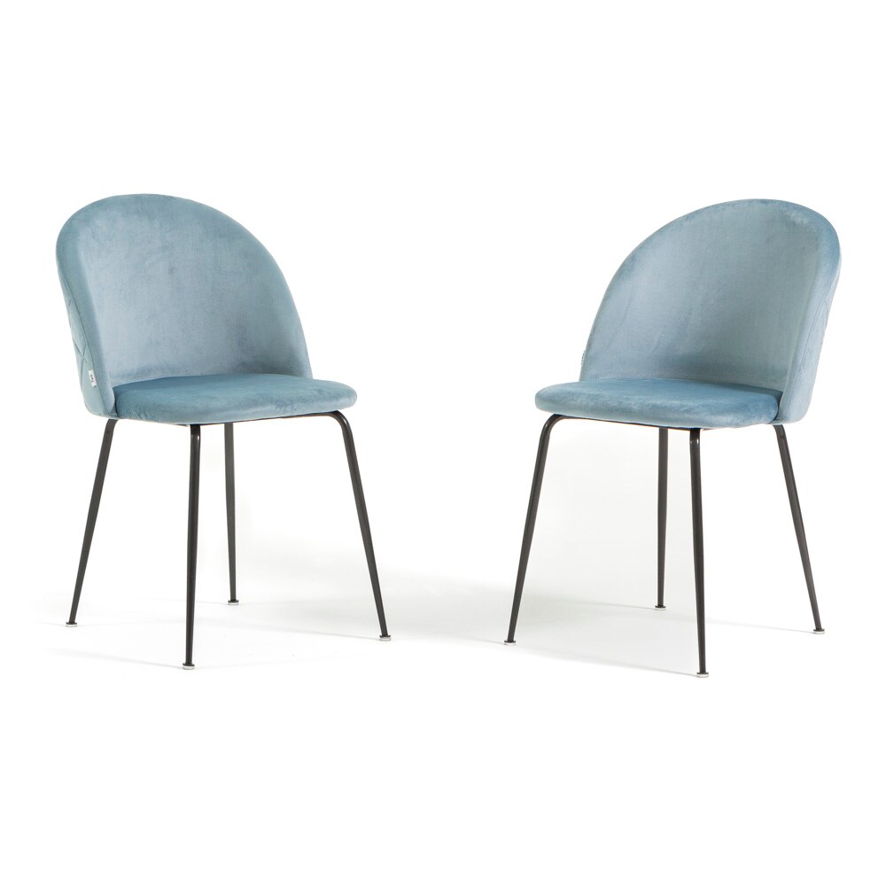 RATTATAN Set aus 2 Innenstühlen aus Samt, gepolstert, mit Metallbeinen, elegantes Design für Küche, Bar und Restaurant – Sara – Himmelblau/Dunkelgrau