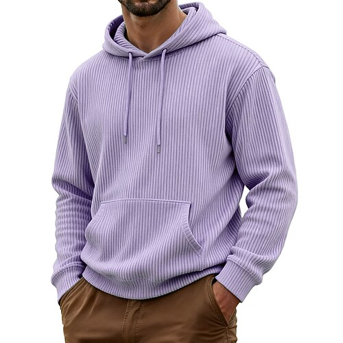 Per uomo Felpa con cappuccio Velluto a coste Rosso bordeaux Nero Bianco Verde chiaro Viola Con Cappuccio Semplice Tasca a marsupio Casuale Quotidiano Sport Outdoor Streetwear Cool Abbigliamento
