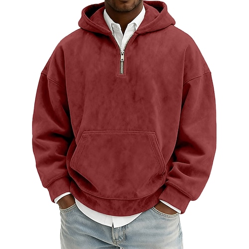 Per uomo Felpa con cappuccio Felpa con cappuccio e zip corta Rosso bordeaux Nero Verde chiaro Rosa Verde militare Con Cappuccio Semplice Tasca a marsupio Casuale Quotidiano Sport Outdoor Vintage