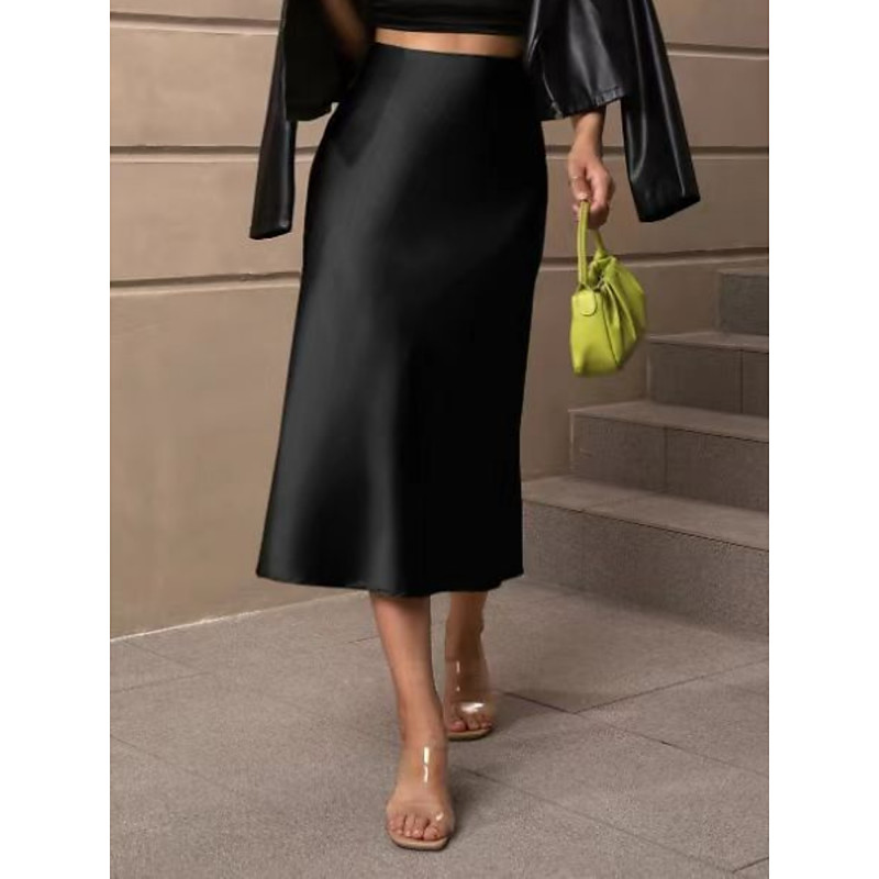 Women's Skirt Bodycon Elegant Fashion Midi High Waist Skirts Plain Micro-elastic Party Street Black Army Green Red Brown Spring Satin Polyester