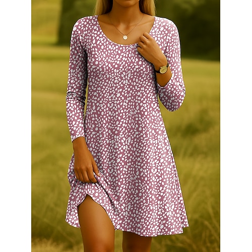Abito Mini Donna Manica Lunga Girocollo Abito Casuale Abito T-Shirt Abito Tee Abito A-Line Abito Casuale Fit Regolare Floreale Grafico Farfalla Rosa Blu Arancione Verde Primavera Autunno Inverno