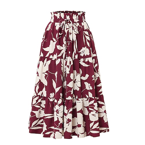 Per donna Gonna Casual Midi Vita media Gonne Semplice Tasca Micro-elastico Vacanza Streetwear Giallo Rosa Verde militare Estate Cotone
