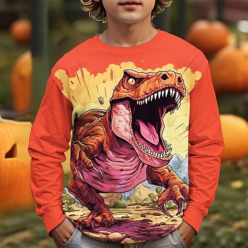 Halloween Jungen 3D Cartoon Dinosaurier T-Shirt Langarm Frühling Herbst Mode Basic Kinder 4-12 Jahre Rundhalsausschnitt Outdoor Lässig Täglich Normale Passform