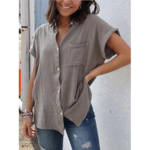 Per donna Camicie di cotone e lino Abbottonare Top Lungo in Cotone Top Bianco in Cotone Semplice Streetwear Casual Manica Corta Colletto a Camicia Top Regolari Quotidiano Weekend Bottoni Tasca Nero