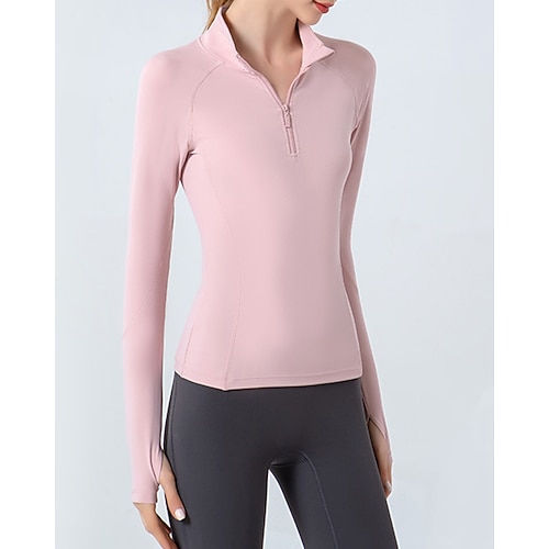 Per donna Tinta unita Maglia da tennis Top sportivo Elegante Zip a un quarto Elastico Traspirante Golf Pickleball Yoga Collo alla coreana Top Inverno Rosa scuro Nero Giallo Abbigliamento da tennis