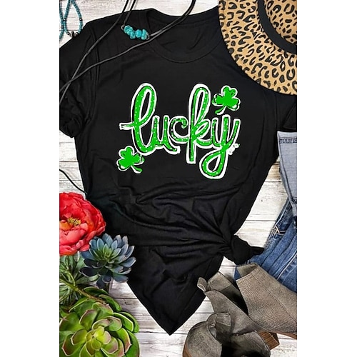Festa di San Patrizio Per donna Maglietta Floreale Elegante Classico Casual Manica Corta Girocollo Top Regolari Quotidiano Stampato Nero Estate Primavera