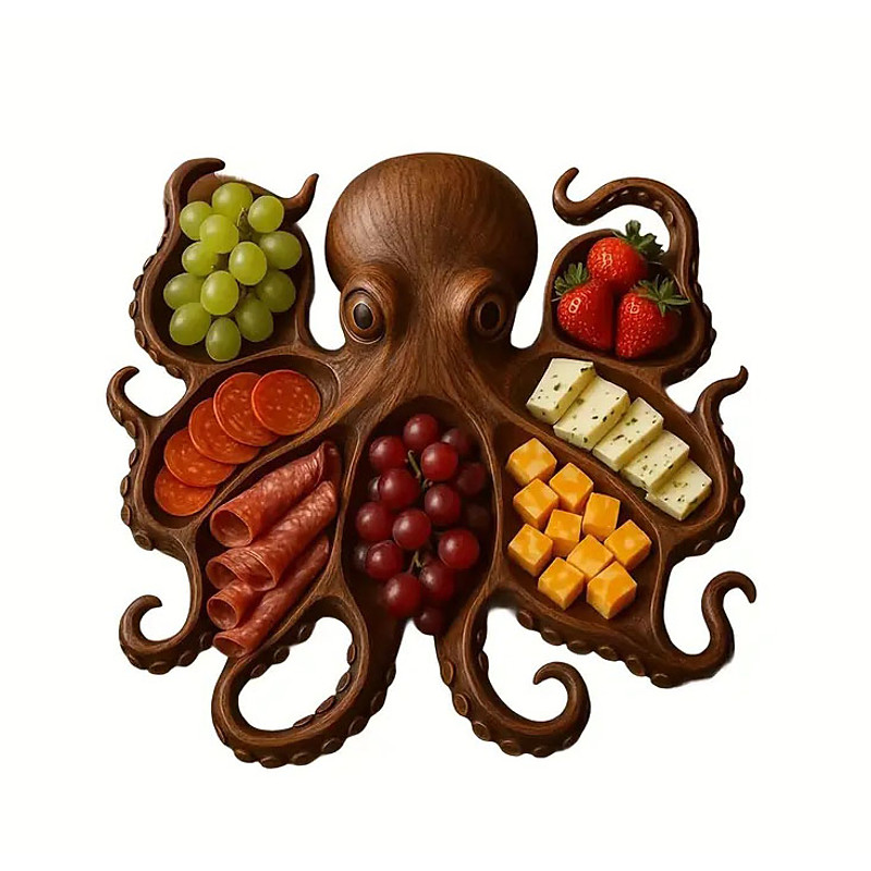 Octopus Charcuterie Platter Octopus Design Wooden Serving Tray Novelty Meats Fruit Ocean Themed Cheese Bread Board Ideal Gift for Seafood Lovers