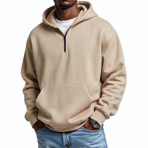 Per uomo Felpa con cappuccio Maglione Felpa con cappuccio e zip corta Nero Rosa Verde militare Blu Reale Cachi Con Cappuccio Semplice Tasca Zip a un quarto Sport Outdoor Casuale Quotidiano
