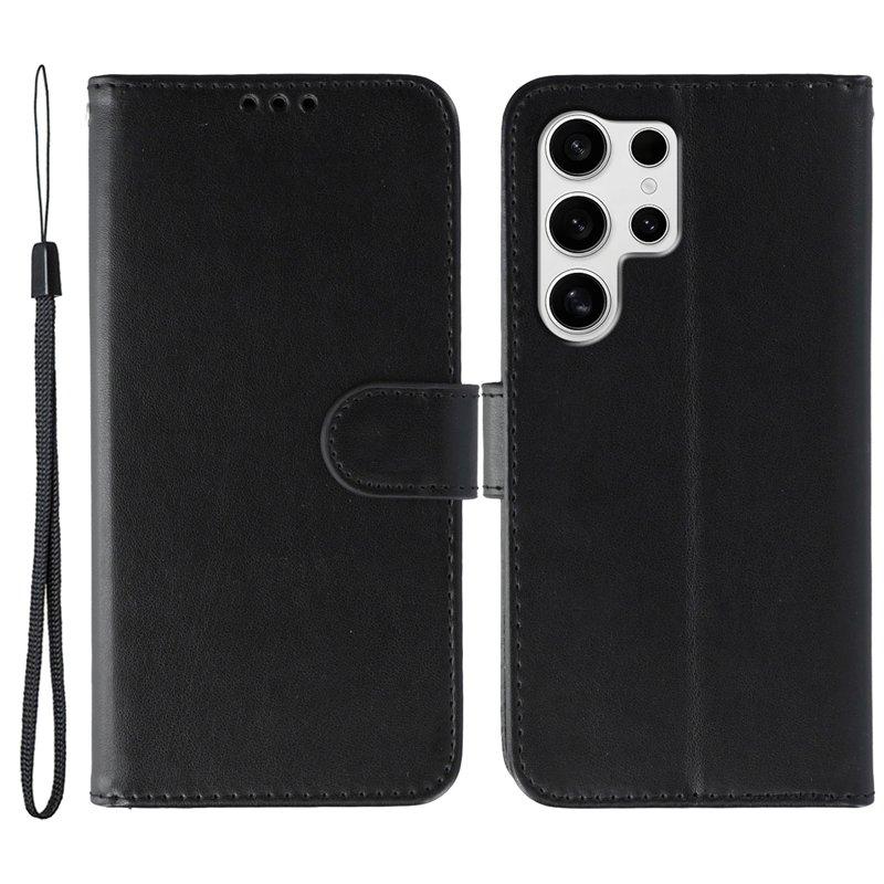 Samsung Galaxy S26 Ultra Plånboksfodral Konstläder Flip med Rem - Svart