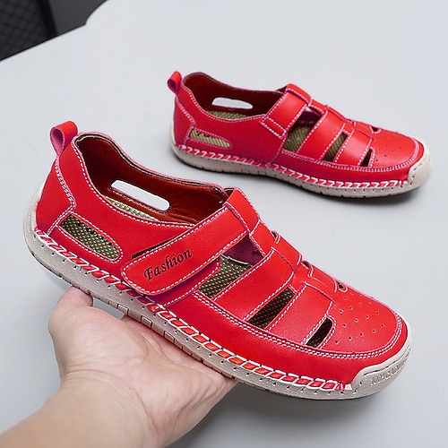 Per uomo Sandali Camminata Casual Pelle PU Confortevole Antiscivolo Traspirante Allacciatura Rosa - nero Bianco - nero Rosso scuro Estate Primavera Autunno