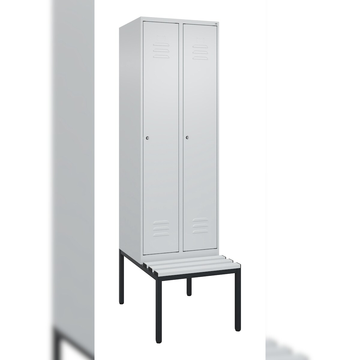 C+P Spind Classic PLUS, Kunststoff untergebaute Sitzbank, 2 Abteile, HxBxT 212x60x82cm, Zylinderschloss, Hellgrau/Hellgrau von PROREGAL