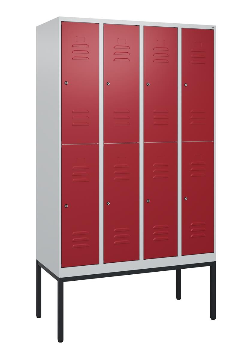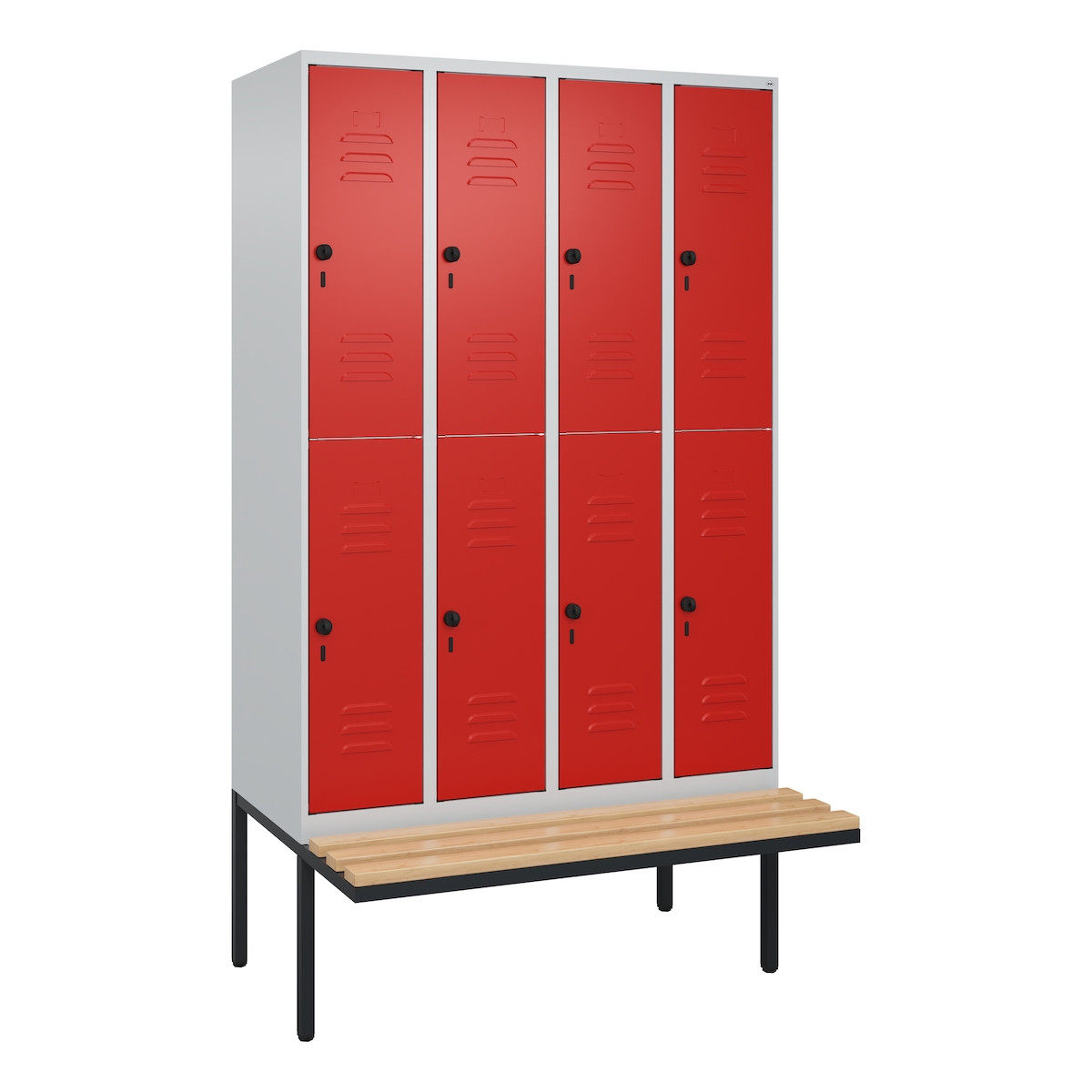 C+P Spind Classic PLUS, Buche schwebende Sitzbank, 8 Abteile, HxBxT 212x120x82cm, Sicherheitsdrehriegel, Hellgrau/Rot von PROREGAL