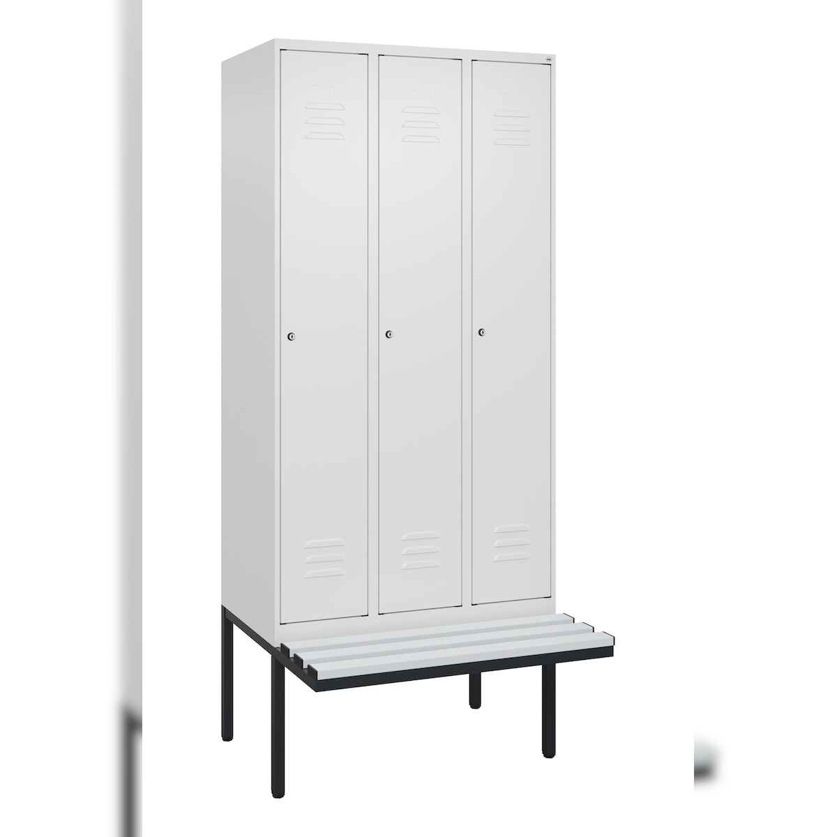C+P Spind Classic PLUS, Kunststoff schwebende Sitzbank, 3 Abteile, HxBxT 212x90x82cm, Zylinderschloss, Verkehrsweiß von PROREGAL