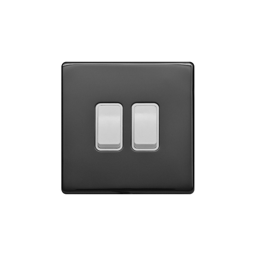 Lieber Black Nickel & White 10A 2 Gang 2 Way Switch - Screwless - Size: 86mm x 86mm x 2 mm