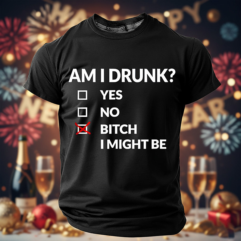 New Year AM I DRUNK Men's Happy New Year Fireworks 2026 T Shirt Short Sleeve T shirt 3D Print Crew Neck Shirt Exaggerated Designer Artistic Party Street Club Fall Winter