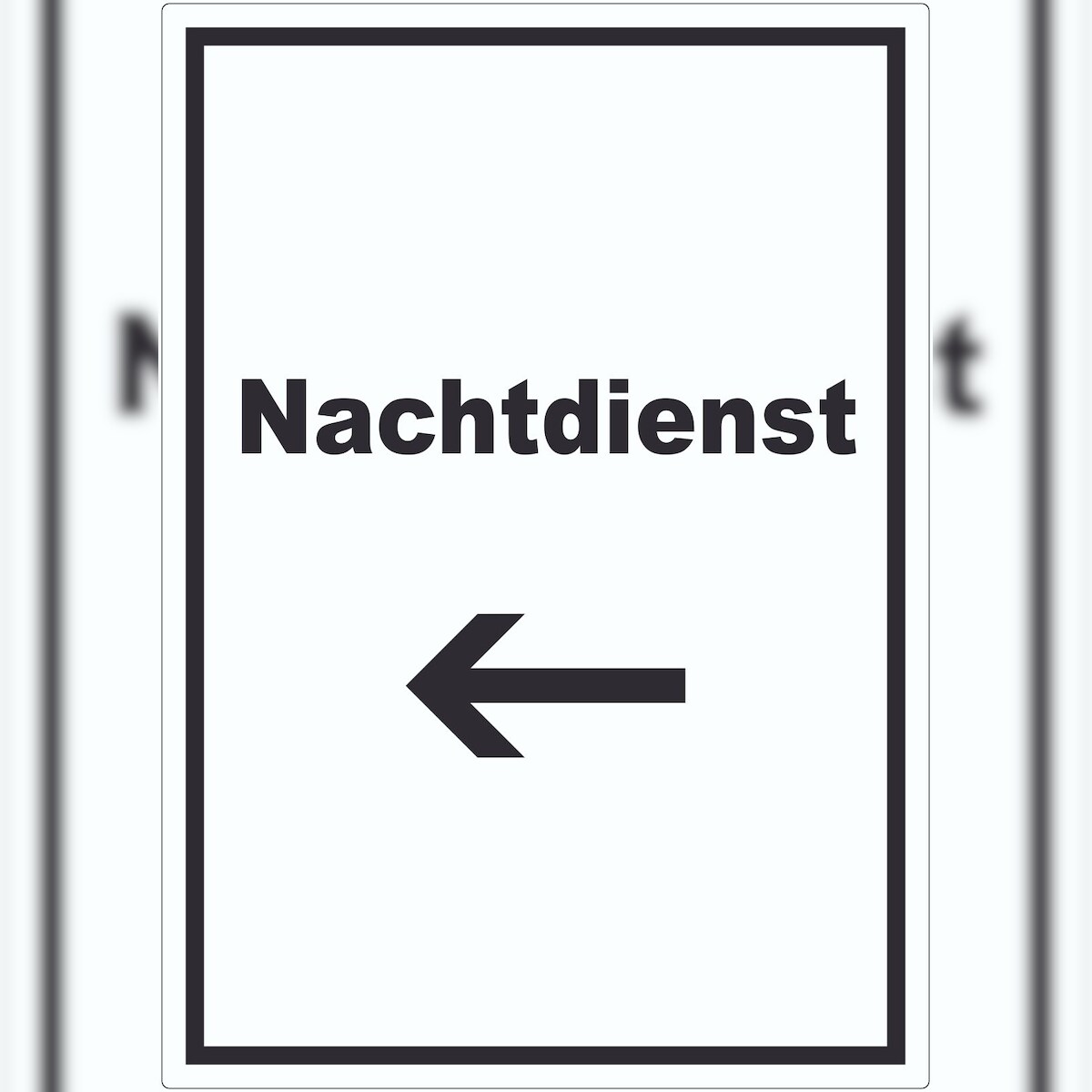 HB-Druck Nachtdienst Aufkleber mit Text und Richtungspfeil links Nachtschalter hochkant A5 (148x210mm)