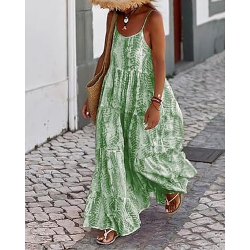Women's Long Dress Maxi Dress Casual Dress Swing Dress Slip Dress Boho Dress Fashion Outdoor Party Holiday Regular Fit Tie Dye Sleeveless Spaghetti Strap Black Pink Green Summer