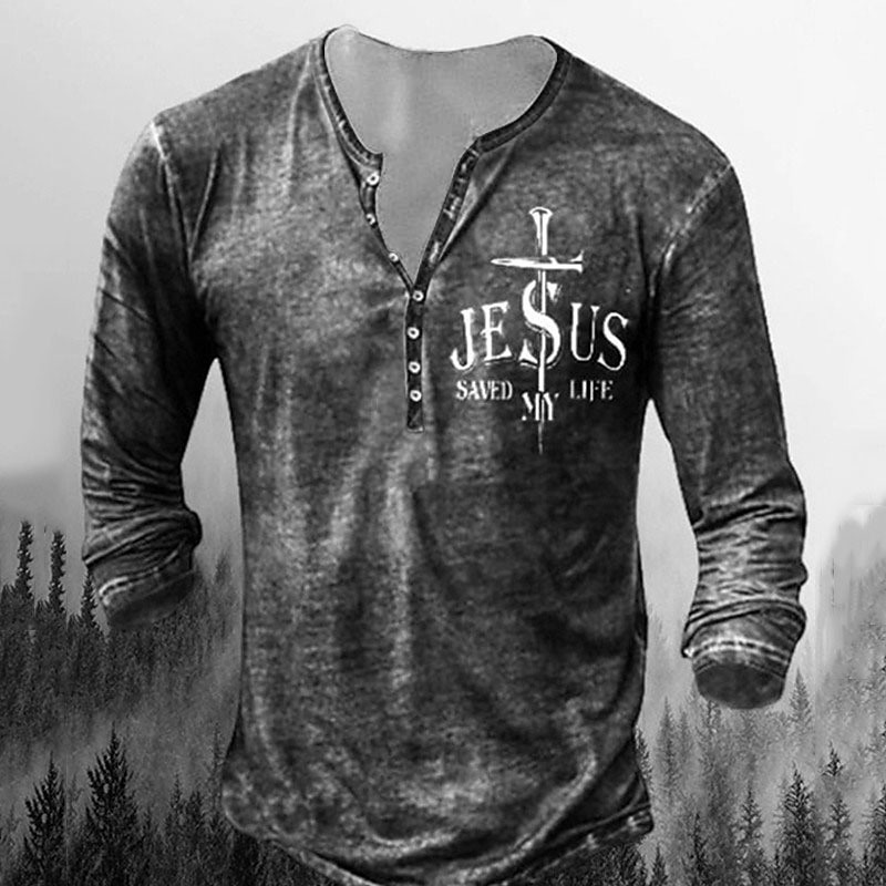 Men's T shirt Tee Henley Shirt Tee Graphic Templar Cross Soldier Henley Light Green Red Blue Green Khaki 3D Print Plus Size Outdoor Daily Long Sleeve Button-Down Print Clothing Apparel Stylish