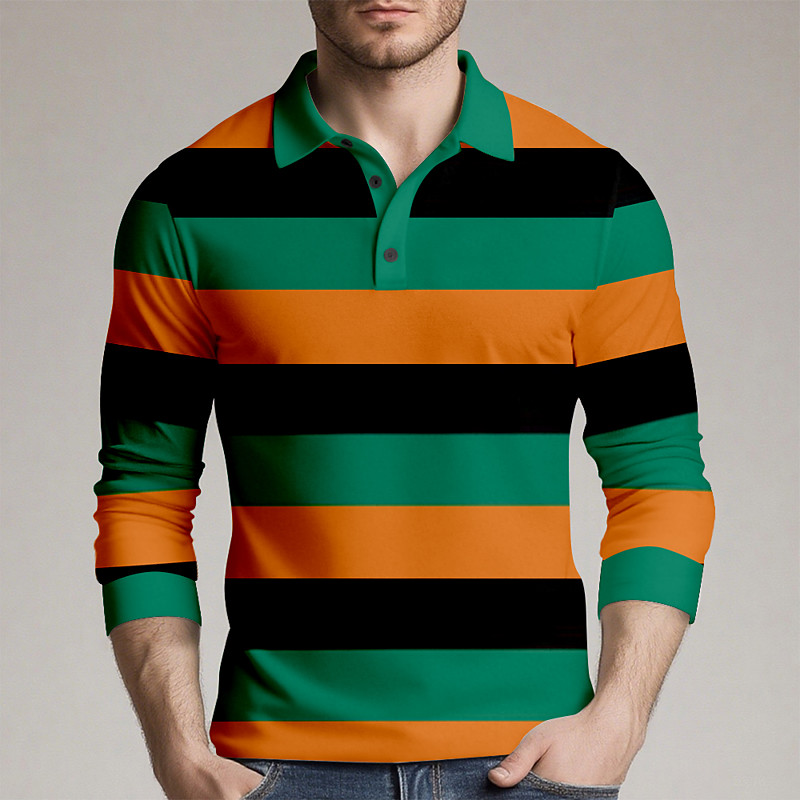 Men's Horizontal Stripes Rugby Polo Long Sleeve Polo Shirts Collared Shirts Sportswear Casual School Outdoor Athleisure 3D Print Spring Fall Winter Green