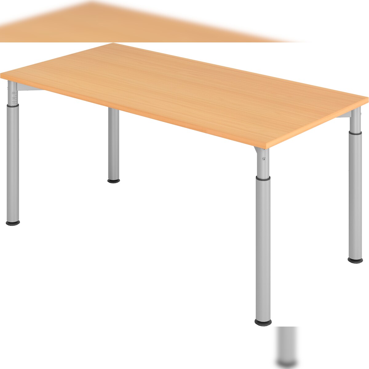 bümö höhenverstellbarer Schreibtisch 160x80 cm in Buche, Gestell silber - PC Tisch höhenverstellbar & groß, höhenverstellbarer Tisch Büro, großer